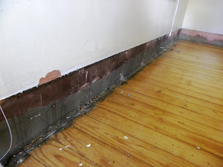 We started sanding and spackeling the wall that used to have cabinets on it.